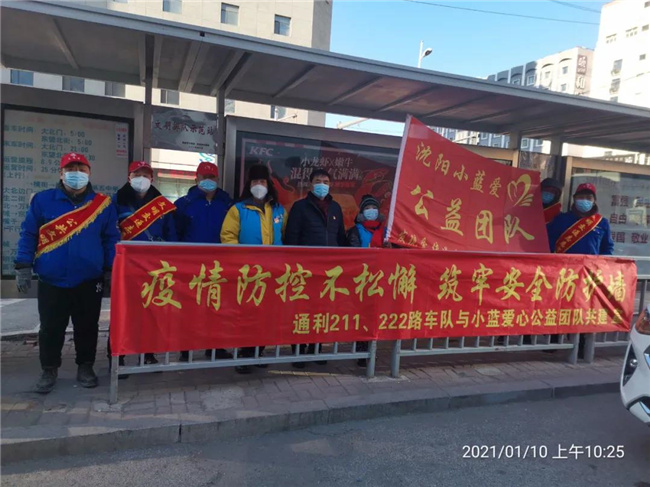 1月10日上午10時(shí),沈陽小藍(lán)爰心公益團(tuán)隊(duì)隊(duì)員來到通利公司211、222路大北門車隊(duì),冒著嚴(yán)寒送來了抗疫物資300個(gè)口罩和兩箱消毒液,并和車隊(duì)共同開展了“疫情防控不松懈筑牢安全防護(hù)墻”主題宣傳活動(dòng),使廣大駕駛員感受到在抗擊疫情斗爭中,社會(huì)爰心團(tuán)隊(duì)對公交車隊(duì)的支持與關(guān)愛。