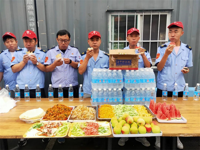 為了保障駕駛員在高溫天氣下,以飽滿的工作狀態(tài)更好的為廣大乘客服好務(wù),車隊密切關(guān)注駕駛員的精神狀態(tài)和身體健康情況,做好駕駛員生理心理健康監(jiān)測工作,加強(qiáng)對駕駛員心理健康的培訓(xùn)和疏導(dǎo)工作。同時,為了調(diào)動廣大駕駛員工作積極性,以更加飽滿的精神狀態(tài)為乘客提供文明規(guī)范的服務(wù),車隊從關(guān)心職工出發(fā),持續(xù)為職工“送清涼 ”、為職工提供礦泉水,西瓜、雪糕,鮮桃做好防暑降溫工作。值得一提的是,三伏第一天,211.222車隊還很應(yīng)景的為職工提供了“烙餅攤雞蛋”和豬頭肉、香腸、魚香肉絲、豆芽炒粉,卷菜等菜品,提高餐品質(zhì)量提升職工用餐滿意度。