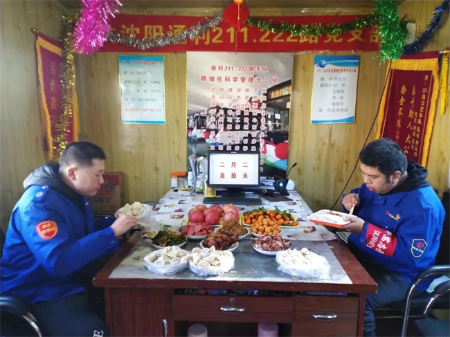 二月二,通利公司211.222路車隊(duì)為職工準(zhǔn)備了豐盛的午餐,有豬頭肉、餃子、香腸等菜品,大家坐在一起共進(jìn)午餐,其樂(lè)融融。