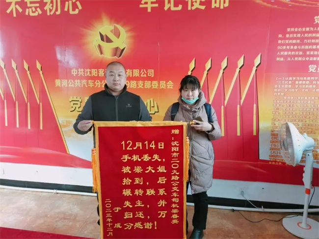 這部價值5000多元的手機(jī)失而復(fù)得,失主于女士非常開心,為表感激之情,趁著元旦假期,于女士將一面錦旗送到了209路車隊。