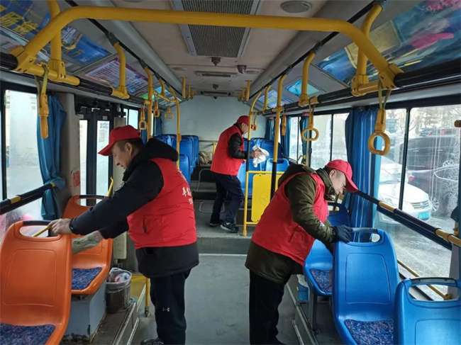 132.229.253路黨支部全體黨員及積極分子兵分兩路,清潔運(yùn)營車輛、清理場區(qū)及始發(fā)站候車?yán)刃l(wèi)生,為乘客提供整潔舒適的乘車環(huán)境。