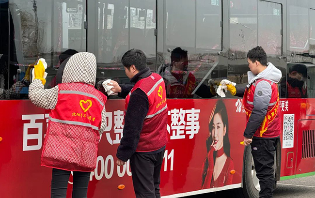 活動(dòng)開始后,團(tuán)員青年及志愿者在簽名板上寫下了自己的名字,以此響應(yīng)號(hào)召成為新時(shí)代雷鋒精神的傳播者、弘揚(yáng)者和踐行者。團(tuán)員青年及志愿者佩戴“我是雷鋒”標(biāo)識(shí)胸牌,并對(duì)沈陽南站樞紐站進(jìn)行大清掃活動(dòng),清理車內(nèi)外衛(wèi)生,擦亮沈陽窗口,樹立公交新形象。