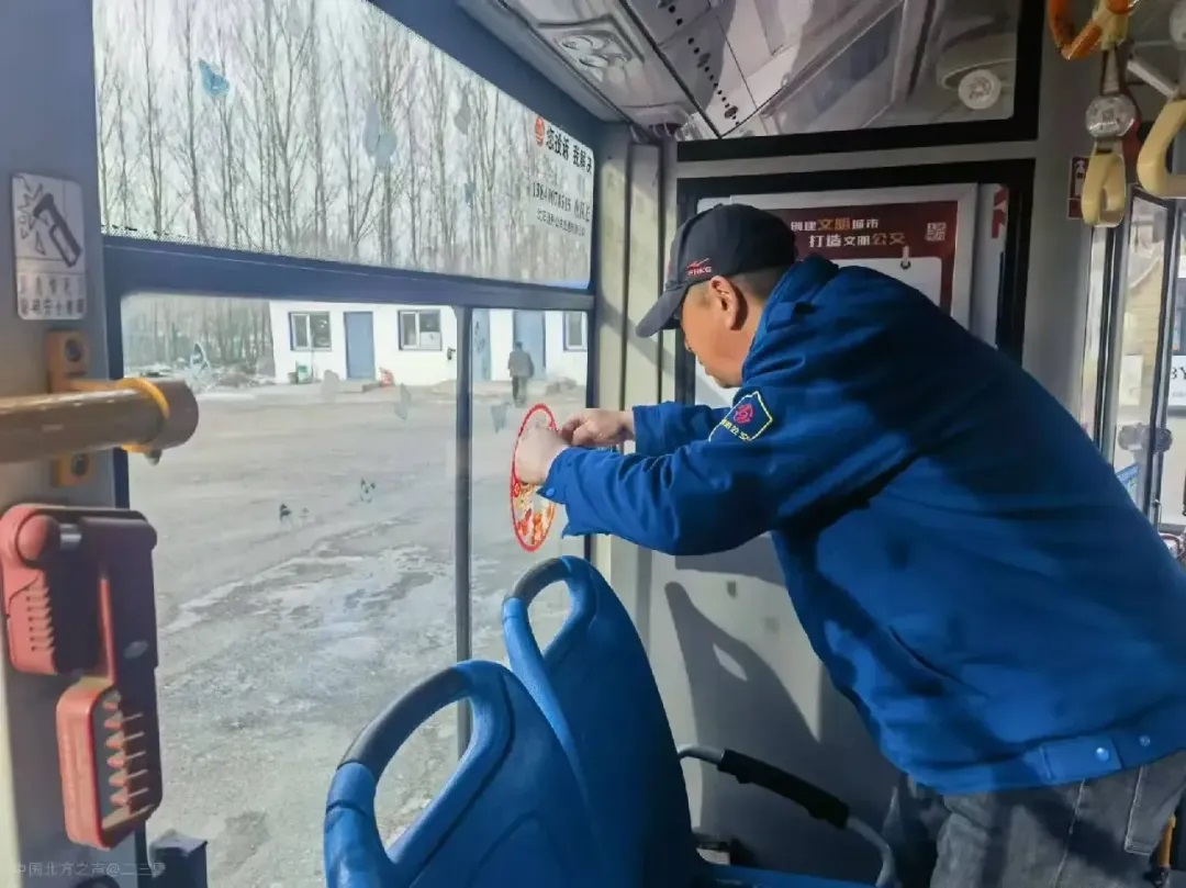 據(jù)了解,元旦前夕,沈陽客運集團按照全市“我是雷鋒”——沈陽市窗口行業(yè)文明誠信服務(wù)寵客(qiě)行動工作安排,落實全市“雙節(jié)”節(jié)日氛圍布置工作要求,積極開展“布置車廂,扮靚沈陽”行動,各車隊利用行車間歇和休息時間裝扮車輛,懸掛新年拉花、紅燈籠,張貼新年窗花及融入“蛇年”元素的貼紙等。目前,已有1188臺途經(jīng)主要街路、景區(qū)、商業(yè)街區(qū)的公交車輛完成了裝飾,車內(nèi)年味十足,客運集團計劃在春節(jié)之前完成全部運營車輛的裝飾布置工作。