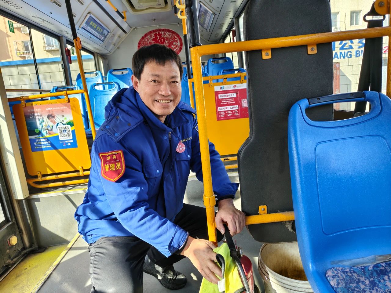 春節(jié)過后,沈陽迎來返程返校高峰,加之線路終點(diǎn)站位于沈陽火車站,客流量大幅增加。為了給返程市民、返沈?qū)W子以及來沈游玩游客提供便利,車隊(duì)按照“微笑服務(wù) 情暖沈陽”的服務(wù)標(biāo)準(zhǔn),認(rèn)真打掃車輛衛(wèi)生,駕駛員更是以嶄新的精神面貌投入到工作中,臉上洋溢著熱情的笑容。