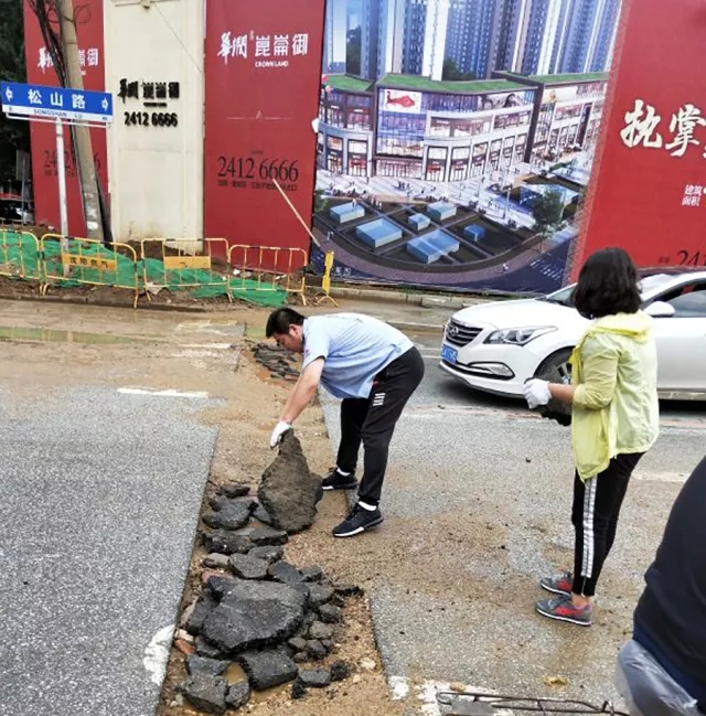 同樣路過此路段的黃河公司217路的駕駛員們也發(fā)現(xiàn)了這個問題。因為行經(jīng)此路段,路面原因造成的塞車不僅影響到正點行車,而且車輛顛簸也可能導致客傷事故的發(fā)生,對車輛底盤也會造成不同程度的損傷。針對這一問題,車隊管理人員與廣大駕駛員想法不謀而合,大家?guī)翔F鍬、麻袋,在周邊施工處尋找到能夠利用上的鋪路石頭,收集裝車運到松山路,大家齊心協(xié)力把原本坑洼不平的馬路填補平坦。路過的司機和行人都紛紛豎起大拇指,稱贊道:“217路的員工個個都是好樣的,為你們點贊?!绷碌奶鞖怛滉査苹穑蠹也林~頭的汗水,聽著路人的稱贊,風趣地調侃道:“路見不‘平’你往里哪走?我們217路該出手時就出手!”大家積極、陽光、向上的精神面貌感染著身邊的每一個人。