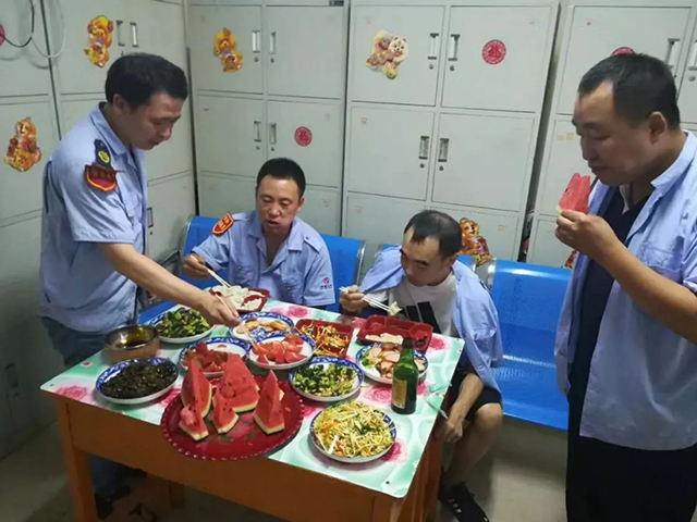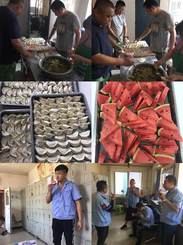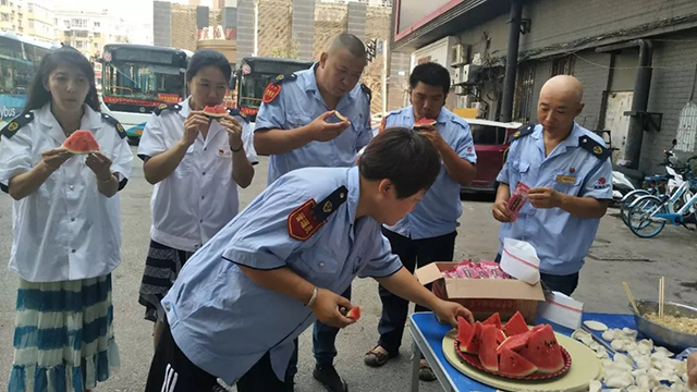 頭伏第一天雖炎熱,但各車隊都在努力為一線職工改善伙食,提供防暑降溫的礦泉水、綠豆水、西瓜等,不僅使大家開胃降溫,又增進了干部職工間的交流,進一步營造了車隊“一家親”的和諧氛圍。