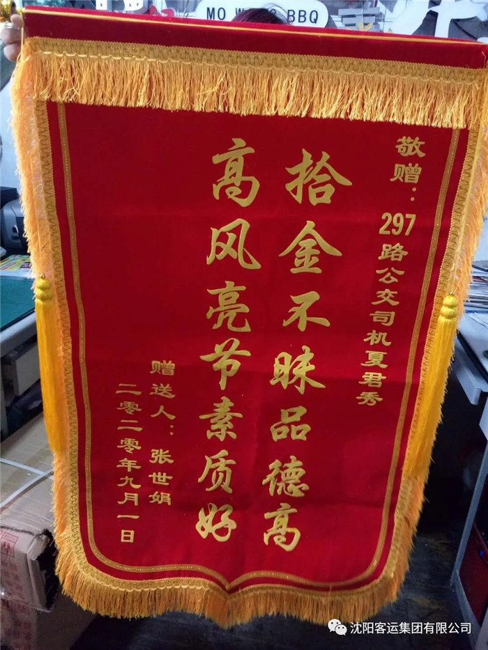 為了表達(dá)感激之情,失主鄒女士特意買來一些水果和零食,并制作了一面寫有“拾金不昧、品德高尚”的錦旗送到了210車隊(duì)。鄒女士介紹說:“自己是一名醫(yī)生,當(dāng)天乘坐210路公交車上班,下車后才發(fā)現(xiàn)背包不見了,真沒想到還能找回來,多虧遇到了咱們好心的公交駕駛員,我特別受感動(dòng),今后我會(huì)在自己的崗位上把這份感動(dòng)繼續(xù)傳遞下去?!?/p>