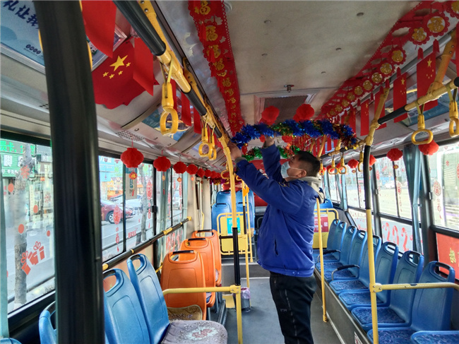 在共產(chǎn)黨員先鋒崗丁亞南駕駛的車上,紅色紙燈籠、藍(lán)色綠色拉花、福字串、窗貼,寫(xiě)著牛年大吉的彩板畫(huà)一應(yīng)俱全,節(jié)日氣氛十分濃厚,車廂里不時(shí)傳來(lái)乘客們的贊揚(yáng)聲和感謝聲。提到裝扮車廂的初衷,他表示:“這不是疫情嘛,疫情本來(lái)大伙心情都比較沉重,我就弄了點(diǎn)兒新年的氣氛,讓大家放松放松心情。我是一名共產(chǎn)黨員,為乘客服好務(wù)是我的宗旨,疫情期間,更需要我們沖鋒在前,迎難而上,為大家樹(shù)立好黨員的形象?!?/p>