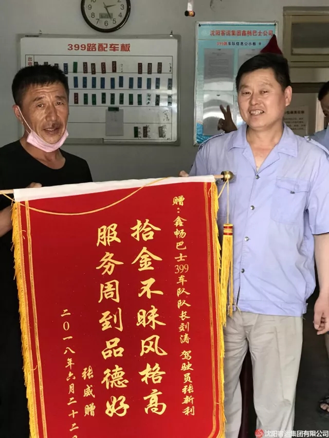原來乘客張先生乘坐399路公交車趕往沈陽站時,在車內(nèi)睡著了,不慎將錢包掉在了車廂的座椅縫隙中,在下車時候并未察覺,到了車站才發(fā)現(xiàn)錢包丟失。張先生說道:“幸虧第一時間車隊(duì)聯(lián)系到了他,不然損失了錢財不說,證件的補(bǔ)辦也是十分麻煩的。”第二天,乘客張先生特地送來了一面錦旗,張先生對駕駛員張新利的感激之情溢于言表。
